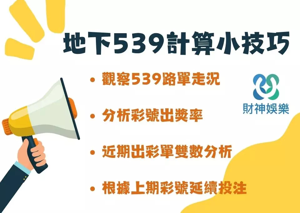 當我們玩地下539時,總是對539的玩法充滿好奇,尤其是對地下539公式的計算方式。那麼,地下539公式究竟是如何計算的?接下來,我們將帶您深入了解地下539公式的計算方法,讓您掌握這個獨特的地下539公式,並學會如何進行購買以實現穩定的回報,從而在地下539中獲得穩定的財富!